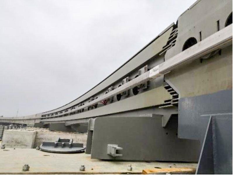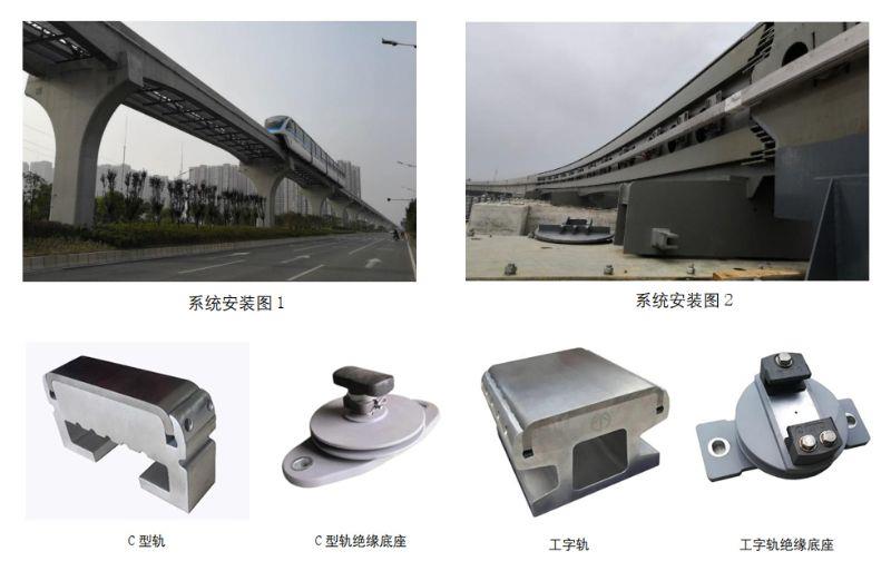 跨座式单轨钢铝复合接触轨系统产品装置于轨道梁两侧,,,,,,, 通过集电靴向电力机车提供电能。。。。。。。该系统产品具有使用寿命长、维护量小、装置操作简朴等优点,,,,,,, 尤其适用于小限界装置使用。。。。。。。