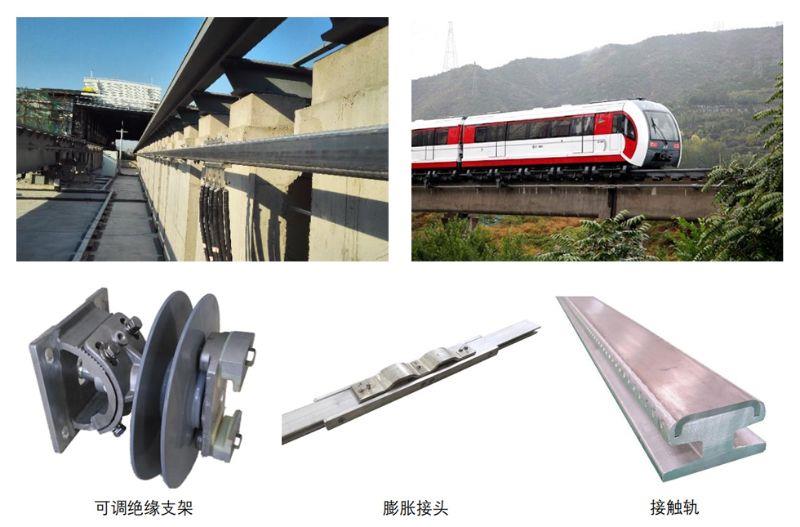 中低速磁浮钢铝复合接触轨架设在轨道梁两侧,,,,,,通过受流器以侧向授流方法向机车传输电能。。。。。接触轨导电性能好,,,,,,承载电流大,,,,,,绝缘支架具备三向可调功效,,,,,,能够有用解决由于土建误差造成的接触轨装置问题,,,,,,并且有用避免接触轨的竖向偏斜,,,,,,知足集电靴高速平滑过渡要求。。。。。